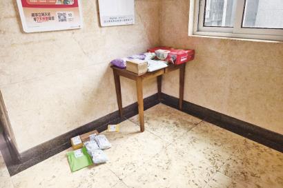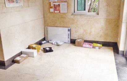 多位驿站工作人员表示,“我来的时候就是这样的”。细问之下,有工作人员说,送上门的这个小区,之前物业有和他们沟通过,一楼空间狭小,放门口又容易淋湿、被风刮跑,所以他们一般都会送上楼。