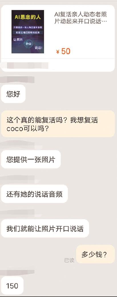 在淘宝上检索“AI复活”,就能弹出几十家店铺,订单价格从几十元到几百元不等。《新闻晨报》记者随机选取了两家排名最高的商家,以消费者的身份向他们进行咨询。