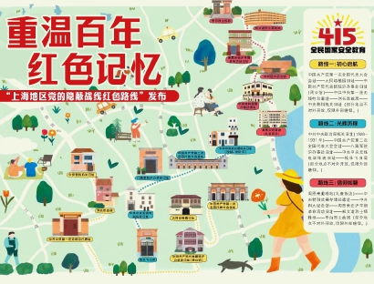 晨报讯 市文化旅游局介绍,在第九个全民国家安全教育日来临之际,为增强国家安全的意识和素养,推动总体国家安全观深入人心,用好红色资源、弘扬红色文化,在市委国安办指导下,市文化旅游局和市国家安全局联合发布第一批3条“上海地区党的隐蔽战线红色路线”,欢迎广大市民群众在党的诞生地、隐蔽战线诞生地追寻红色足迹,重温百年红色记忆,感悟新时代发展成就,厚植共同维护国家安全的家国情怀。