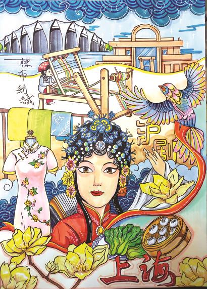 评委点评:将上海的历史、文化、地标、品牌等元素组合在一起,详略处理手法娴熟,用色典雅细腻,很好地传递出对城市的热爱与礼赞。