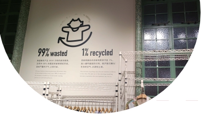 “目前,我国旧衣回收利用率不足1%,加入循环服装的行列,保护我们赖以生存的空气、水源和土地。”