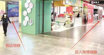对比下来,记者跟着商场指示牌走的距离和时间大约都是直达地铁路线的两倍。
