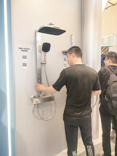 在现场工作人员的演示下,记者发现,按摩效果的产生得益于雾化喷射淋浴技术,喷头可以360°调节,全身都能被细密的水冲刷到,侧喷大范围水花设计,可以持续对后背进行冲洗,两者结合,就能有效缓解疲劳,得到一种沉浸式舒缓按摩沐浴体验。