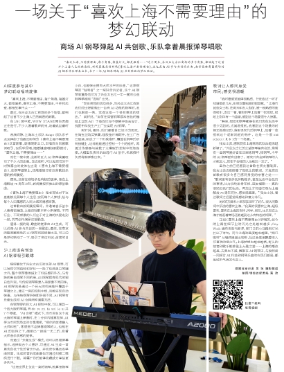 “喜欢上海,不需要理由,每个角落,每盏灯火,都是温柔……”这个周末,在兴业太古汇商场的多个角落,都响起了这首不少上海人已然熟悉的,新闻晨报原创新歌《喜欢上海不需要理由》,这也是由AI参与共创的乐曲,南京西路商圈商场的AI钢琴将其弹奏出来,来了一场AI钢琴弹起AI共创歌曲的梦幻联动。
