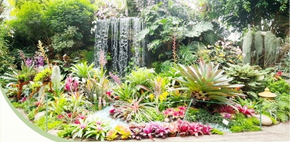 本次展览共展示包括卷瓣凤梨属植物在内的凤梨科植物共计16个属、500余株,这些凤梨搭配组合成“蝶飞凤舞”“王的盛宴”“凤梨花境”等8组景点。