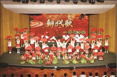 ■乐动童心庆“六一”:最后,“庆六一班班有诗歌”活动拉开帷幕。演出时,每个年级、每个班级、每位同学身着华丽服饰,手持各色道具,闪亮登上舞台。各班的表现形式精彩纷呈,在合唱的基础上,师生们各显神通、大展才艺,或舞蹈、或朗诵,或器乐伴奏、或说唱助兴……大家都在用最动人的歌声,最用情的舞姿,最精彩的表演为大家呈现最绚丽的舞台,献上最真挚的祝福。