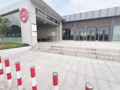 为了防止电动车、自行车拦住出入口,龙阳路地铁站的12号口前设置了路障,也同样拦住了轮椅的进入,如果想要在路障外看清引导标识也很不容易。13号口的路障到引导标识的距离更远,即便视力极佳恐怕也未必看得清上面的内容。