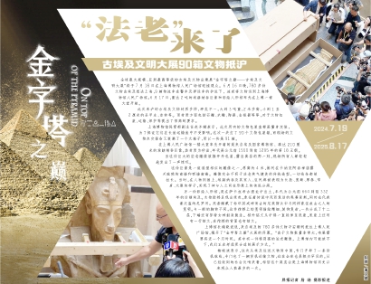 上博馆长褚晓波说,来自埃及的780多件文物平安顺利抵达上博人民广场馆,揭开了“金字塔之巅”大展的序幕。“由于文物数量非常大,布展需要将近一个月时间。其中有一件特别高的法老雕像,上博馆内可能放不下,我们正在考虑更合适的展示方式。”