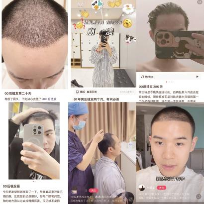 在小红书等社交平台上,这类视频并不少见。00后们纷纷晒出了自己日益稀疏的后脑勺和后退的发际线,大家彼此鼓励打气一起接受植发。他们自我调侃:“00后整顿职场?不,他们整顿的是自己的发际线!”