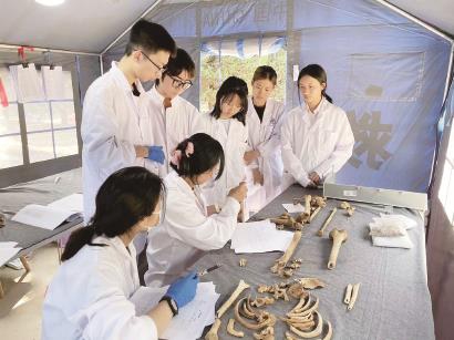 学习方式的转变也是学习效率提升的因素之一。参加雪村烈士项目前,2022级文博系本科生计嘉彤专门学了两个星期的骨骼分辨,却没完全掌握这项技术。“但在雪村,两三天就学会了。”
