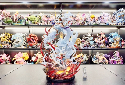 “这个路飞的造型让我想到动漫里的一个情节。主角和反派通过镜子果实穿越到镜子里进行大战,本来路飞已经奄奄一息了,但是凭着意志最后觉醒了,也反败为胜了。”小吴拿着一个似云雾包围的路飞的手办说,看到这个造型,顿时心里感到很平和。