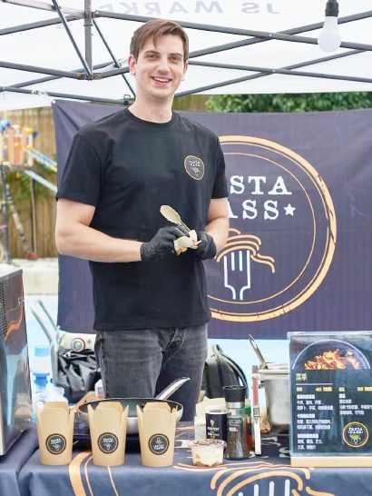 “把我们的意面拿到市集上摆摊,其实相当于‘练兵’。”Joyce说,出餐速度已经有了明显的提升,更加难能可贵的是,还有不少尝过意面的人特地跑过来告诉他们“味道不够辣”“素食不够多”等等意见,甚至还有人询问他们的线下门店,准备以后光顾。