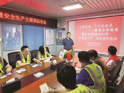 ■宣传进工地:6月13日,北站街道在中建五局工地开展了安全生产月主题培训,现场共计组织了50余位工友积极参与其中。在活动现场,众多工友们积极参与了安全讲座,观看了安全生产宣传片及宣传展板,充分了解到安全生产“五落实、五到位”和安全生产“十二忌”在建筑工作中的重要性。本次主题活动进一步提高工人安全生产防范意识和责任意识,促进企业落实安全生产,有效降低行业事故伤亡率。