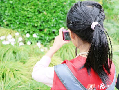 我们很荣幸地见到了园长,大家都争相向她提问。有小记者问园长,怎么想到经营一处豆科类植物公园?园长说,因为综合性的公园已经很多了,这里附近有不少小区和学校,也许孩子们会喜欢豆科类植物呢。这真是不一样的理念。采访好园长,我们就要进行摄影实践了。在前一节课上,大陈老师教了我们很多构图法:有放射式、对称式、九宫格式、斜三角式和正三角式等等。我在园里各种比划取景,把这些办法运用起来。最后,选了我最喜欢的几张照片给大陈老师看,大陈老师夸奖说,那张对称式湖水倒影拍得非常好。我开心极了!