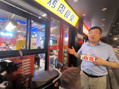 戚建豪一眼注意到,每个餐桌上都有一瓶黄牌辣酱油。他倒了一点在排骨上,“上海人吃炸猪排都蘸这个。”至于排骨年糕的口味,他觉得,“还行,但排骨有点干,离‘正宗’还有改进的空间。”