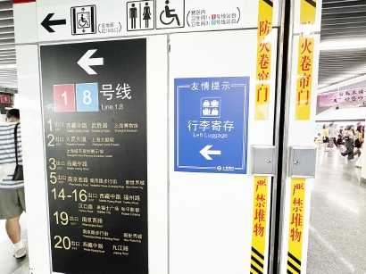 7月27日,上海12座地铁站开启了8小时免费的行李寄存服务试点,分别为上海火车站、人民广场、陕西南路、南京东路、虹桥2号航站楼、豫园、大世界、陆家嘴、一大会址·黄陂南路、曲阜路、东方体育中心、龙阳路站。
