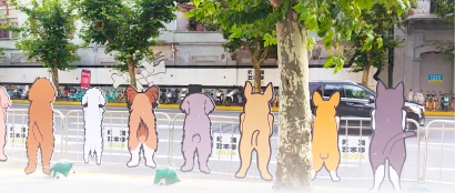 去年,方浜中路化身“外滩猫街”,老城厢突然出现萌宠一度引发全城热议。最近,记者发现,在人民路沿街,则出现了一根长长的骨头,对岸十几只小狗正望眼欲穿。而在大豫园旧改区域,还有更多治愈萌犬!