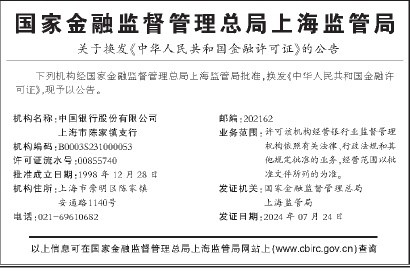 关于换发《中华人民共和国金融许可证》的公告