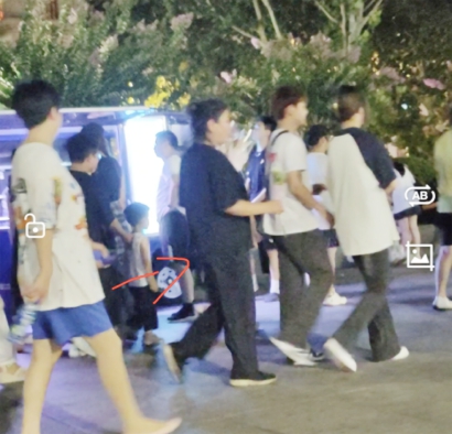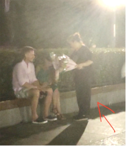 23:04,这名女子先是跟在一对情侣身后,想将手里的花束递给他们。没有成功后,她又将注意力转移到另一对情侣身上,她先是将花束猛然递到这对情侣面前,女生摆手拒绝后,她又与男生在原地僵持了数秒后才离开。