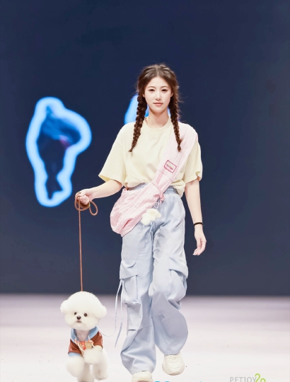 “花呗的命运齿轮开始转动,是今年上海时装周的时候,有一个宠物时装的专场,需要猫猫狗狗作为模特上台走秀。我心血来潮带着它参加海选,其实就是穿上选定的服装,在T台上走一圈,花呗很配合,在大约上千只狗狗里脱颖而出,被选中参加其中一场走秀。”小慧说,时装周结束回去一周后,就有人打来电话,是一个宠物服装品牌要拍宣传照,需要一个狗狗模特。