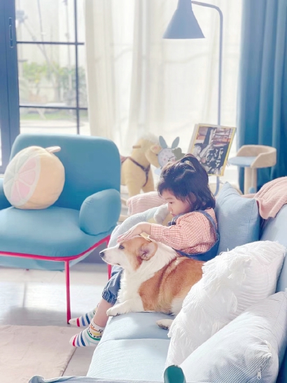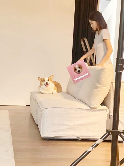 刚开始是柒柒的一位模特朋友,出于工作需要,临时要一只柯基一起拍摄,朋友就找到了她。柒柒一方面是想帮朋友的忙,另一方面也想让狗狗多一项体验,没想到kk到了拍摄现场非常兴奋,“好像一下子到了它的舒适圈,一下子也能听得懂很多指令,以前从来不拆家的,出于剧情需要,导演让它搞破坏,它竟然也做到了。”