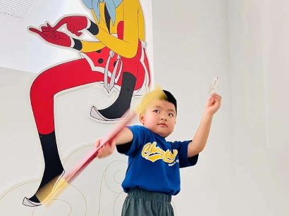 一位策展人表示,最有感触的就是看着孩子们拿着用展览海报做成的金箍棒。“相信每个孩子的童年都做过关于孙悟空的梦,希望他们能多了解一些《大闹天宫》背后的故事,在未来耍起自己心里的金箍棒。”