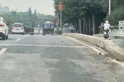 提及上海哪条路的路况差?开车的市民之间一直流传过一句话——“北军工,南龙吴”,因为大型货车常年行驶于这两条路上,各种“补丁”、裂痕、碎石子以及扬尘深深困扰着通行的市民。近日,新闻晨报·周到帮办记者多次走访了龙吴路,发现部分路段很不平整,车子行驶在路面“跃动感”十足,而一旦到了雨天,积水泥泞又让人苦不堪言,一旦车速较快,就会出现机动车水溅电瓶车,而电瓶车又水溅行人的糟心场景……