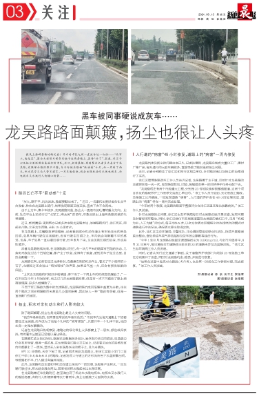 龙吴路路面颠簸,扬尘也很让人头疼