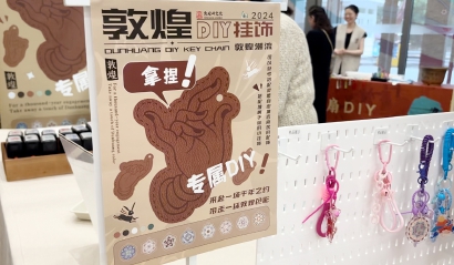 “大家都想带一份独特的文创回家,那最独特的莫过于自己DIY的。”本着这样的设计理念,敦煌研究院的设计师团队设计了各种配饰材料,挂绳、拉环、串珠、挂坠,由游客自己组合成专属的挂件。