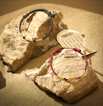 这次的限定款来自敦煌金与上海老凤祥的联名款,“关照”足金手绳,有“敦煌九色鹿”“上海老凤祥”“上海市花白玉兰”等多种元素。