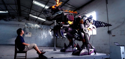 成长在上世纪八十年代,孙世前和同龄的很多男孩一样,对《变形金刚》《太空堡垒》《高达》这类机甲动漫毫无抵抗力。想要拥有自己喜欢的角色玩具,却受限于当时的物质条件,孙世前只能用瓶盖、纸板、包装盒等手边的材料,学着给自己做机器人模型。而这一切,也为他日后考入中央美院、从事设计工作打下了坚实的基础。