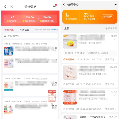 “双十一的计算逻辑越来越复杂,很容易漏掉券,而且不同阶段券不一样,没准哪个产品就悄咪咪地降价了。看到有朋友分享的保价攻略就试了试,果然,收到了退款。最重要的是,一定要多试几次,我积分中内试了好几次,次次都有退款的。”小徐分享她成功保价的经历,因为多试了几次一键保价,省了800元。