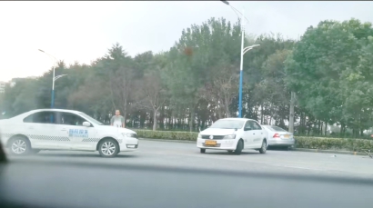 只见这位教练一边站在马路中央,大声喊着:“倒、倒、倒……”等指令,不断向同时练习的两辆白色轿车下达指令,完全无视被用来练习倒车的场地,是一段正在使用中的城市道路的正中央。