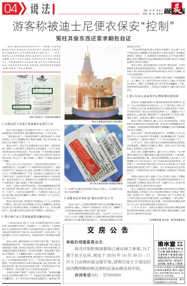 游客称被迪士尼便衣保安“控制”