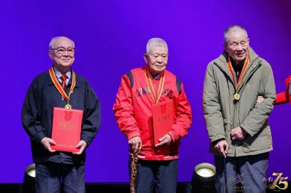 为了向与上影同行的奋斗者致敬,上影集团向8位在不同岗位与上影共度75年光辉岁月的老上影人,授予了“光荣在厂75年”纪念奖牌,他们是上影的“90后”,这8位超过90岁的老人和上影风雨共度,这些美好而珍贵的同行者是上影的宝藏。