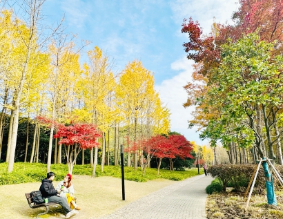 从世纪公园2号门至3号门,一条栽满银杏树的主干道长1000米、宽12米,挺拨的银杏树构成这道风景的主体。此时的银杏大道已吸引众多游客前来赏叶拍照,金黄的银杏叶子随风飘舞,令人为之沉醉。园内的水杉、红枫也开始展现属于自己的风采,大红、深棕、红褐,层层晕染。