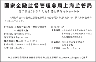 关于换发《中华人民共和国金融许可证》的公告
