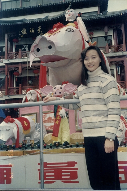 “1994年8月,大学毕业应聘进入豫园商城,次年春节作为赏灯人参与了第一届豫园新春民俗灯会。”豫园股份党委副书记、工会主席范志韵特意翻出了1995年猪年主灯组前的留影照片,“这张照片记录了我开启职场人生的新阶段。”