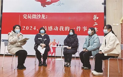 ■【微沙龙】2024,最感动我的一件事 在党员微沙龙环节,冯鹰、蒋文芳、叶逸、李佳雯四位党员分享了自己在2024年最感动的一件事。有的党员讲述了自己在工作中遇到的困难与挑战时得到的团队协助;有的党员分享了与搭班间的相互扶持、共同成长;有的党员交流了自己在磨课研课中收获的感动与温暖;还有的党员则谈到了自己在学习新知识、新技能,开拓小社团支持幼儿的活动路径以及过程中的收获。一个个温暖故事的背后是彼此间的守望相助,更是团队的双向奔赴。