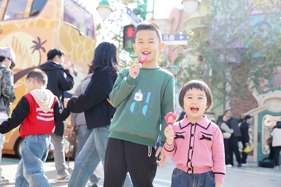 在“疯狂动物城”主题园区,随处可见精心装扮的游客,戴上耳朵、尾巴等装饰品,化身成动物城的一员,结伴打卡拍照,完美融入园区场景。