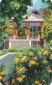 《桂馥秋爽》一画中,就是瑞金医院1907广场的治愈秋景。