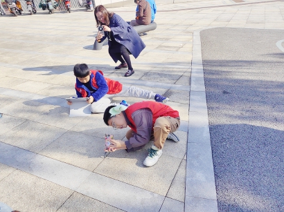 我还是让爸爸当我的模特,我跳上石凳子,向上伸展我的身体,反复调整角度,几乎垂直从上往下拍,几经尝试,终于拍出来满意的“小矮人”。“我成功了!”我高兴地上蹿下跳,激动不已。