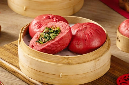 过新年有送红包的传统。在百年素食老字号春风松月楼,素菜包被升级成“大红包”,外观十分喜庆。馅心里加了笋丁,吃口鲜爽脆嫩。工作人员告诉记者,“大红包”延续传统古法工艺制作,老面发酵后加入甜菜根粉,红包就成了真能吃的“大红包”。