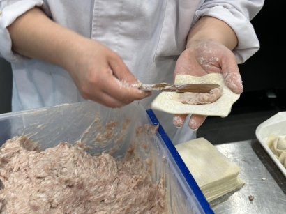 大富贵中华路总店石韵告诉记者:“我们大富贵的刀鱼馄饨,馅料采用新鲜的刀鱼去骨留肉为主要原料,再加肥瘦相间的猪肉,使馅料嫩滑多汁。皮用的是我们自制薄而有韧性的馄饨皮,满满的馅料加上吹弹可破的皮子,再加上高汤的加持,使整碗刀鱼馄饨浓郁鲜美。”