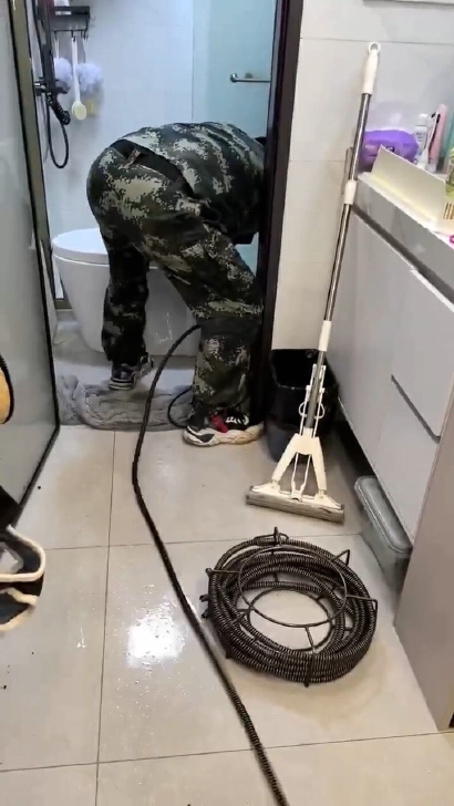 “厨房间水斗下面的门一拉开,水‘哗’一下子流出来了,很脏很臭,还有一块一块的东西。我一看不对,反水了,肯定下面(管道)堵住了。”汤老伯回忆,自己用棉毛衫、棉毛裤吸水,爱人则跑到楼上挨家挨户敲门请邻居暂停用水,“还好邻居们很帮忙,也有热心邻居帮我们打了物业的应急电话,后来一个维修师傅赶来了,到地下一层做了一些应急措施,说今天他只有一个人,只能暂时控制,具体还要后续处理。”