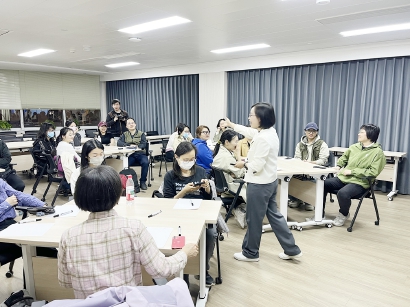 同样年纪的蒋阿姨一头银发梳得整整齐齐,坐在人群中就已经气质不凡。她告诉记者,在女儿帮自己抢好了课之后,她还特地到群艺馆附近转了转。“这里环境安静,很适合我们这个年纪。而且学一学形象管理,把自己打扮得干干净净的,也能让自己在和姐妹们聚会的时候提升自信。”已经退休多年的蒋阿姨也把这次的课程视作充实生活的方式。班级里有同龄人一起,也多了可以交朋友的机会。