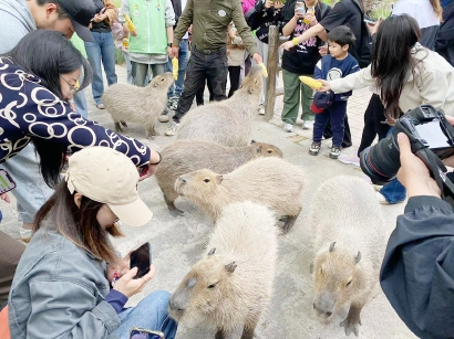 “五一”假期,一大群火烈鸟、一小群卡皮巴拉都将走出展区,来到园区主干道散步,和游客近距离互动。此外,萌萌的企鹅也将仅隔着低矮的竹篱笆和游客见面。