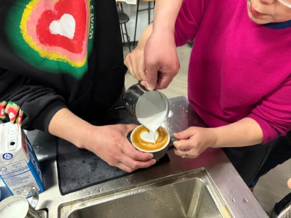 “我们在课上会学到意式咖啡的制作,其中最难的就是牛奶的打发和拉花。初学者一般要一箱牛奶的量,才能学会拉花。”