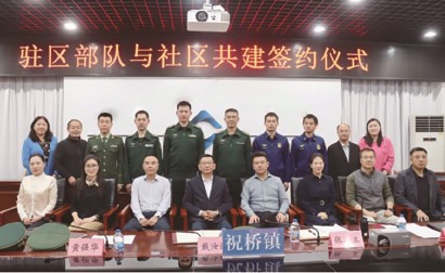 ■军地共建签约,共绘双拥新蓝图 签约仪式在庄严热烈的氛围中举行。祝桥镇党委书记王石峰,镇党委副书记、镇长范叶青,镇党委委员、武装部长许贲,副镇长顾娇娇等领导出席活动。五大社区书记、武装部、社工办相关负责人,驻区部队及消防中队负责人共同参加,见证这一重要时刻。