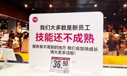 而随处可见的致歉标语也解释,“我们大多数是新员工,技能还不成熟,服务有不周到的地方,我们会加快成长,请大家多谅解”。